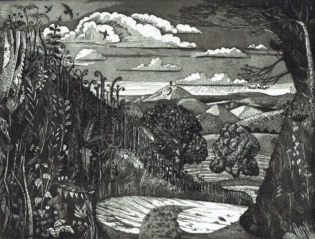 More detail and tonal variation added for this new edition of an older etching, with a second aquatint.